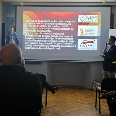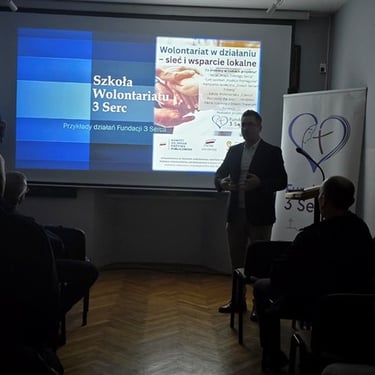 28 października w siedzibie Fundacji 3 Serca odbył się warsztat „Organizacja wydarzeń i działań społecznych – planowanie i koordynowanie akcji wolontariackich, zarządzanie zasobami oraz promocję działań” w ramach projektu „Społeczność 3 Serc – Lokalna Mapa Dobra”, finansowanego przez Narodowy Instytut Wolności – Centrum Rozwoju Społeczeństwa Obywatelskiego w programie MOC MAŁYCH SPOŁECZNOŚCI. W 4‑godzinnym szkoleniu wzięło udział 20 aktywnych wolontariuszy z Przemyśla i okolic. Uczestnicy poznali metody planowania akcji, techniki koordynacji zespołu, zasady zarządzania zasobami oraz sposoby promocji działań społecznych.