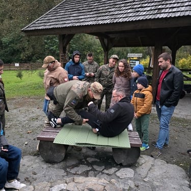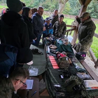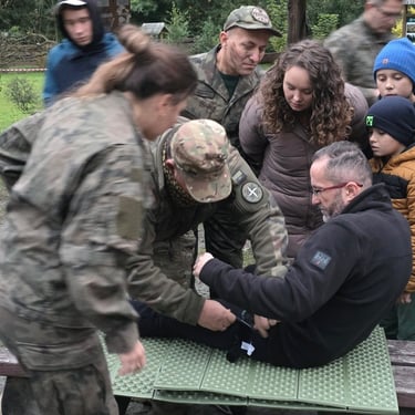 Warsztaty przyjęły nietypową i bardzo praktyczną formułę – łączyły ćwiczenia terenowe z realistycznie odtworzoną sytuacją kryzysową, w której uczestnicy musieli podejmować decyzje w ograniczonym czasie i w zmieniających się warunkach. Dodatkowo elementy survivalu, takie jak organizacja miejsca akcji, przygotowanie improwizowanych środków opatrunkowych czy poruszanie się w trudnym terenie, pozwoliły każdemu sprawdzić swoje reakcje w warunkach zbliżonych do rzeczywistych sytuacji awaryjnych. Dzięki temu szkolenie było nie tylko nauką teorii i technik, ale także treningiem praktycznej odporności i kreatywności w działaniu pod presją.